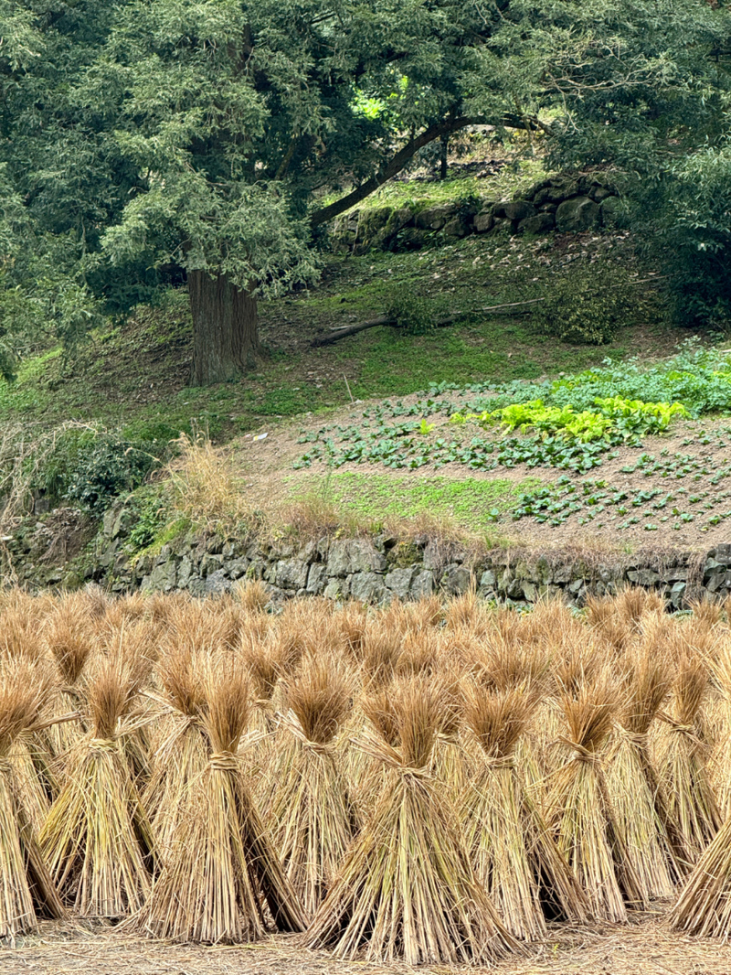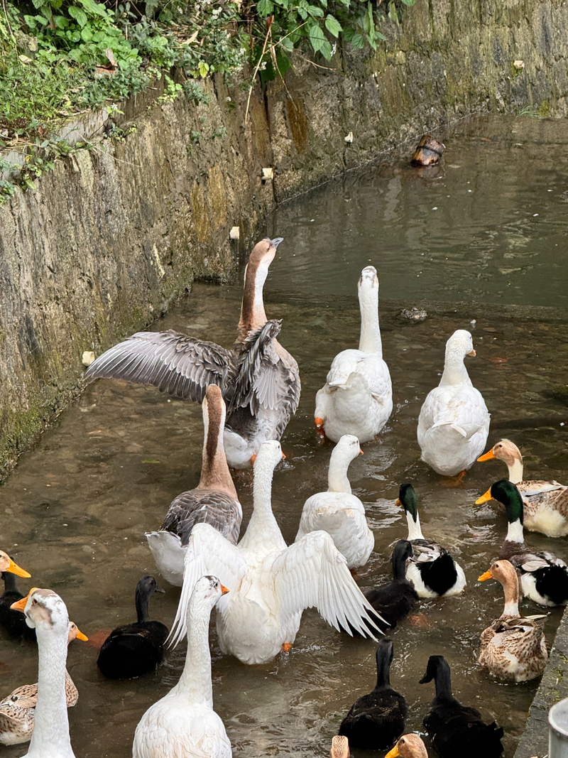 沿着山路下山,途径杨家门村,后到安村的水杉林。虽然这段大部分是村中的公路为主,但是有很大的惊喜,先是看到墙角的骡子,再是在田中吃菜吃草的狗子,还有水渠里的鸭鹅,还有那捆扎好的稻草堆。