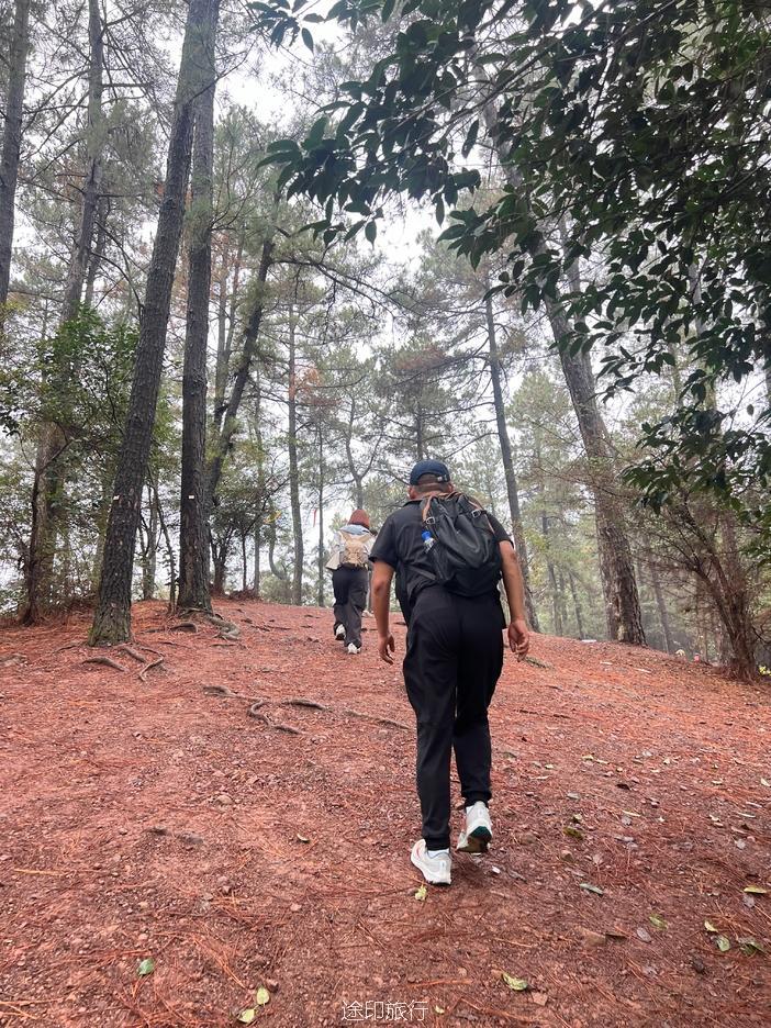 沿着蜿蜒的小路前行,我们向着大禹谷珠峰进发。山路两旁,铺满了厚厚的落叶,踩在上面,发出沙沙的声响,仿佛是秋天在低吟着一首悠扬的小曲。阳光透过树叶的缝隙洒下,形成一道道金色的光线,如同梦幻般的舞台灯光,将整个山林装点得如仙境一般。一路上,不时有形态各异的巨石横卧在路边,有的像沉睡的巨兽,有的像沉思的老者,它们静静地见证着岁月的变迁,也为我们的徒步之旅增添了几分神秘与乐趣。