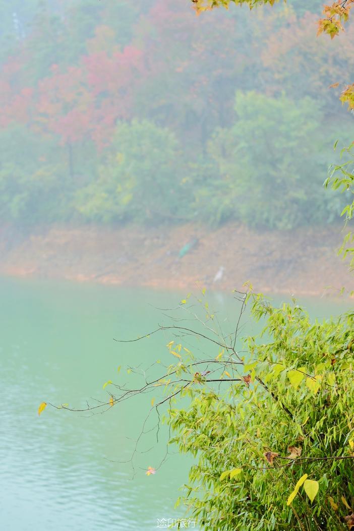“江南忆,最忆是杭州。” 杭州的秋,宛如一首清新隽永的诗篇,在岁月的长河中低吟浅唱。抵达长乐林场大禹谷,刚一下车,清新的空气便扑面而来,仿佛是大自然馈赠的一场洗礼。沿停车场的游客步道往里走,首先映入眼帘的是甘岭水库,那平静的湖面宛如一面巨大的镜子,在阳光的映照下闪烁着粼粼波光。湖水清澈碧绿,宛如一块温润的翡翠,镶嵌在群山环抱之中。水库周边,群山连绵起伏,山上的树木五彩斑斓,红的似火,黄的如金,绿的像翠,仿佛是大自然这位杰出的画家打翻了调色盘,将世间所有的绚丽色彩都倾洒于此。
