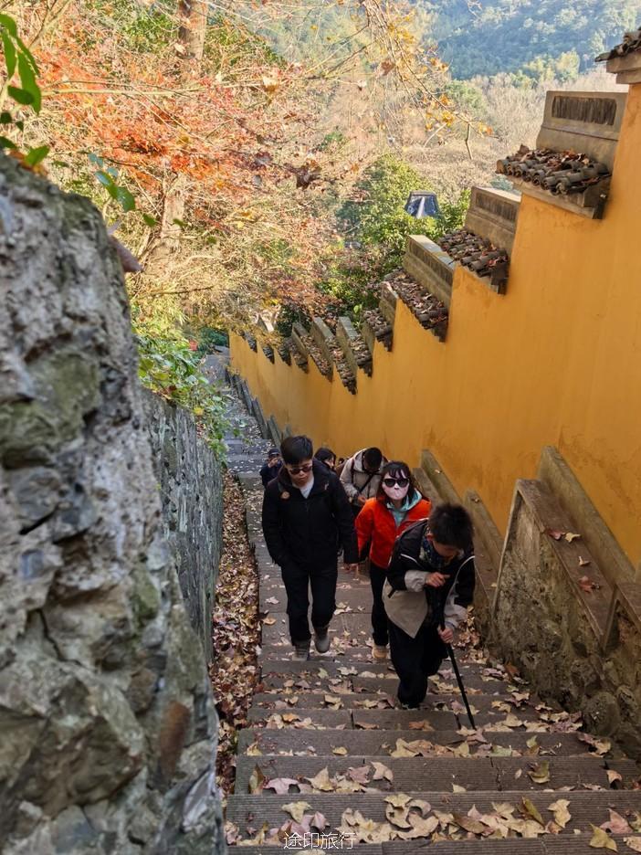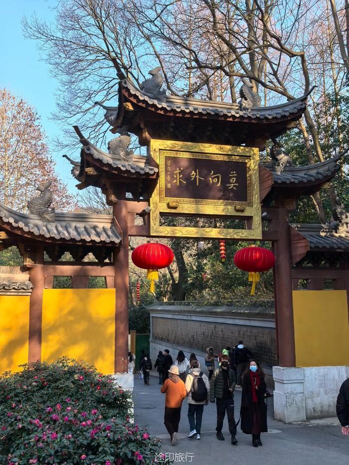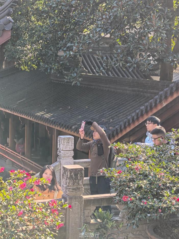 路线基本是景区段,开始一段爬升到达纳福平台,视野特别开阔,西湖也尽收眼底。 再走不到半小时就能到达北高峰第一财神庙,香火特别旺。 法喜寺比较大,一路沿台阶拜上去,可以到达网红打卡机位。不比三月玉兰花开时的人山人海,现在淡季体验感拉满。
