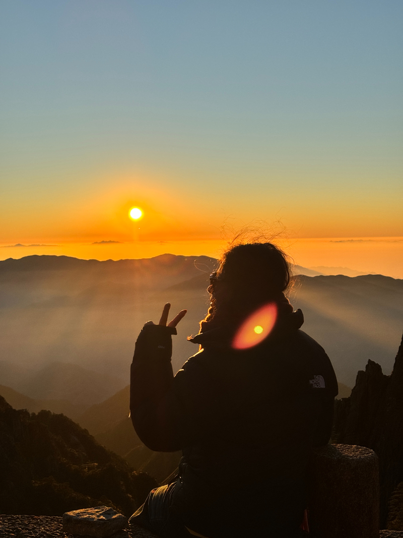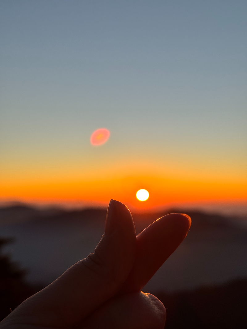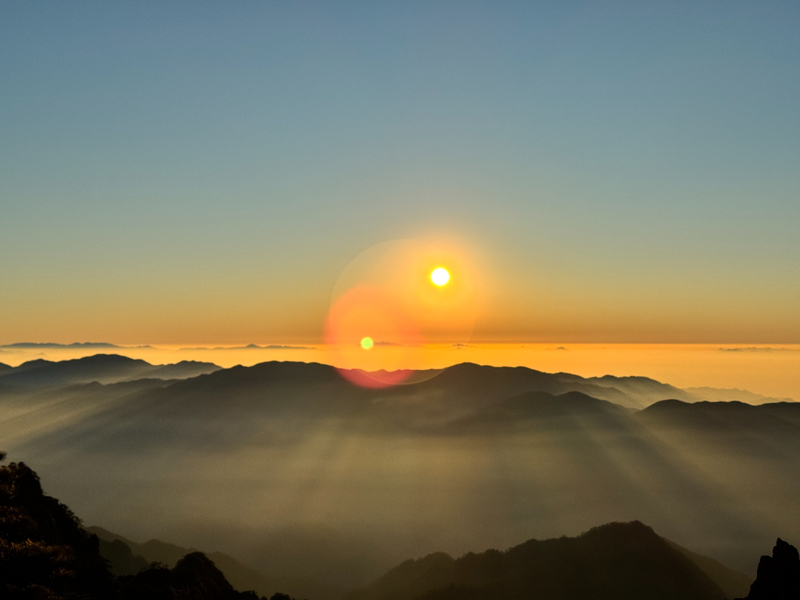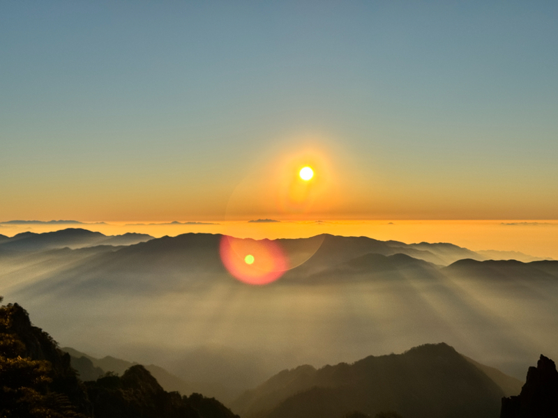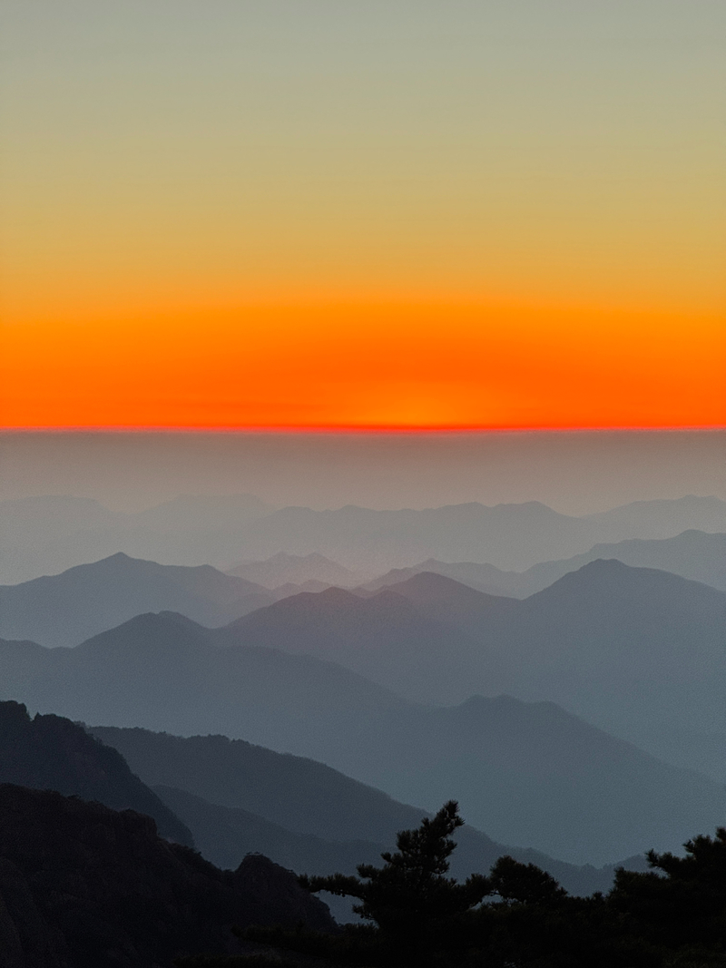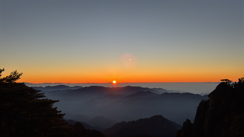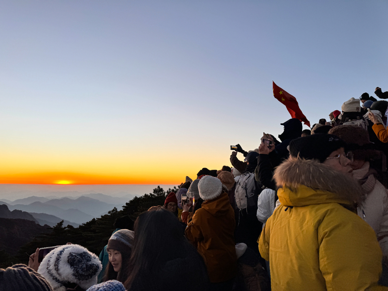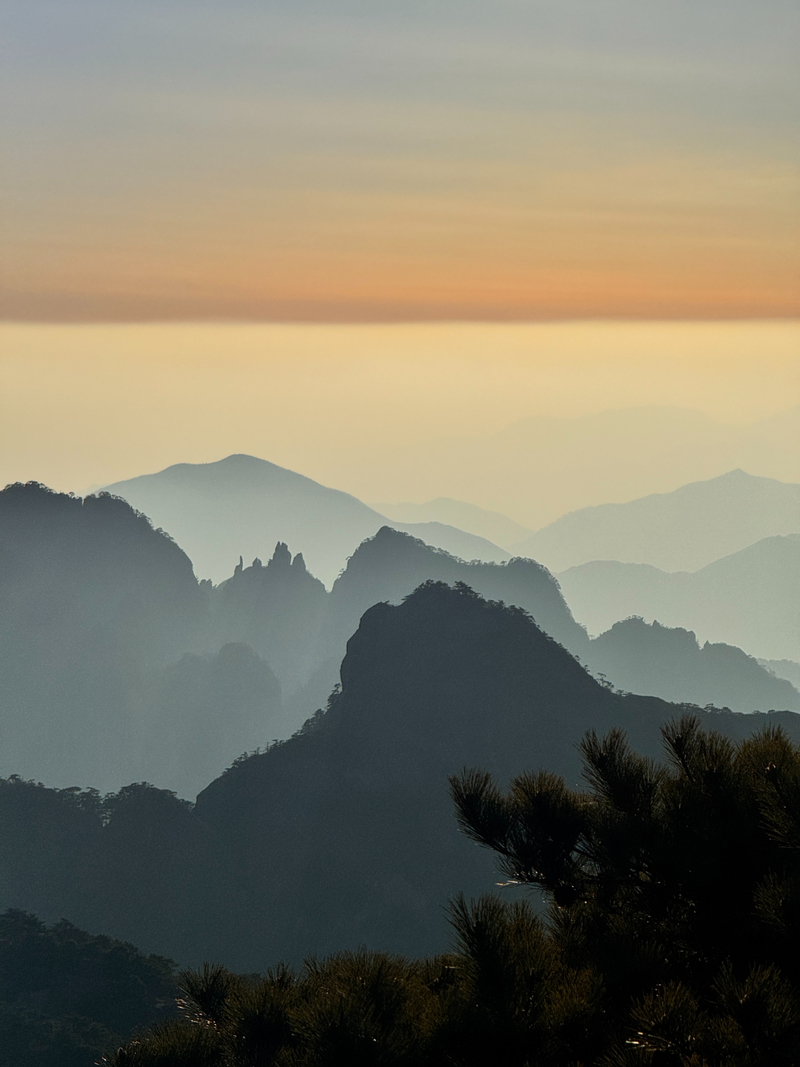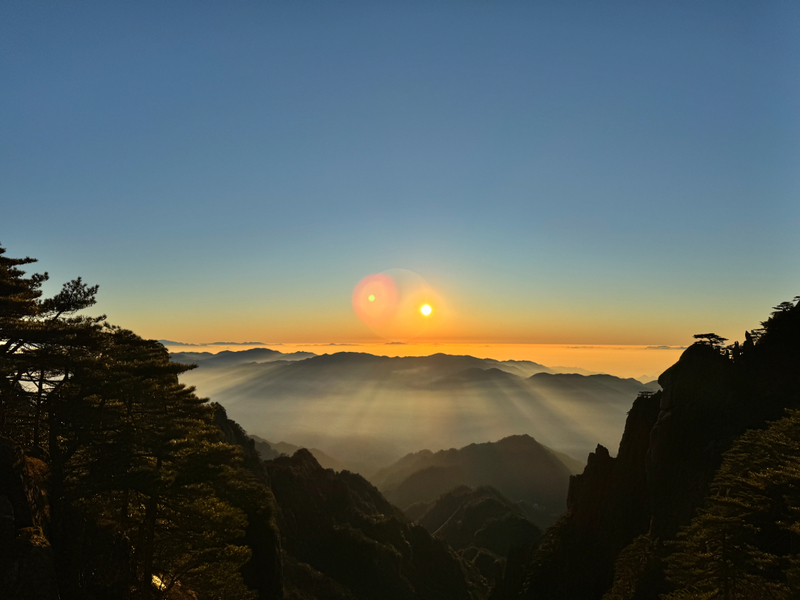 赶在日落前,我们来到光明顶。光明顶是黄山的第二高峰,海拔 1860 米。站在山顶,整个黄山尽收眼底。夕阳的余晖洒在山峰上,给山峦披上了一层金色的外衣。天边的晚霞绚丽多彩,与云海相互映衬,构成了一幅绝美的画卷。在人群挤满的山顶,欣赏着这壮丽的日落景象,心中充满了对大自然的敬畏和赞美之情。