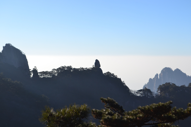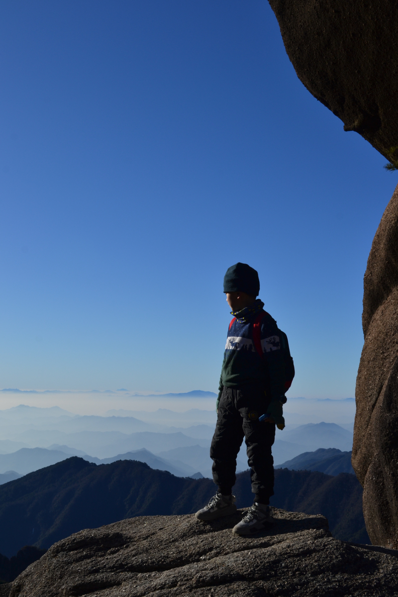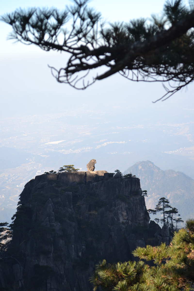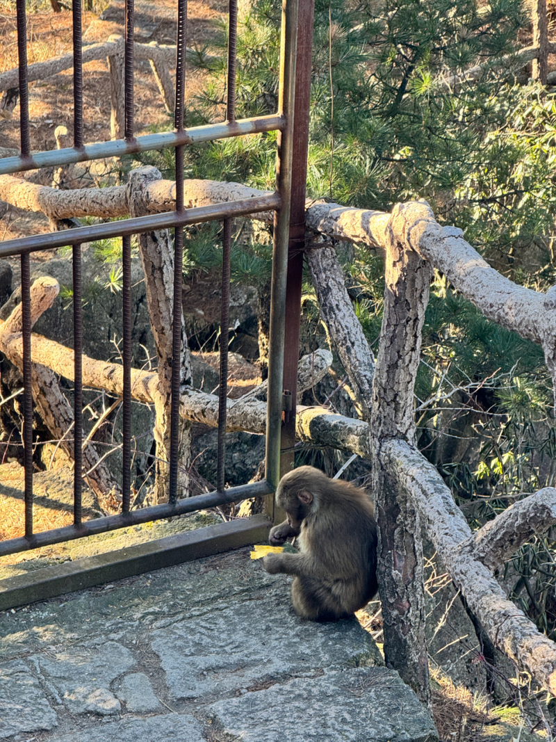 随后出发前往猴子观海。这段路是往返的折返线,以台阶上上下下为主,但风景如画。当看到那只栩栩如生的 “猴子” 静静地蹲在那里,凝视着云海时,我们被大自然的神奇创造力所震撼。这次幸运的是,看到了真猴子,没有山里猴子的野蛮。