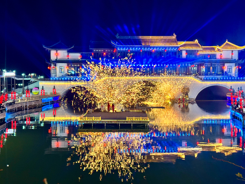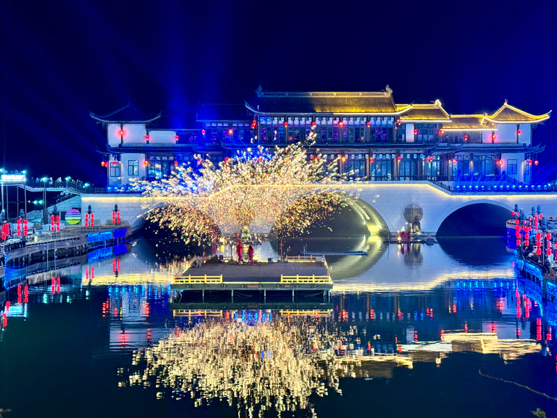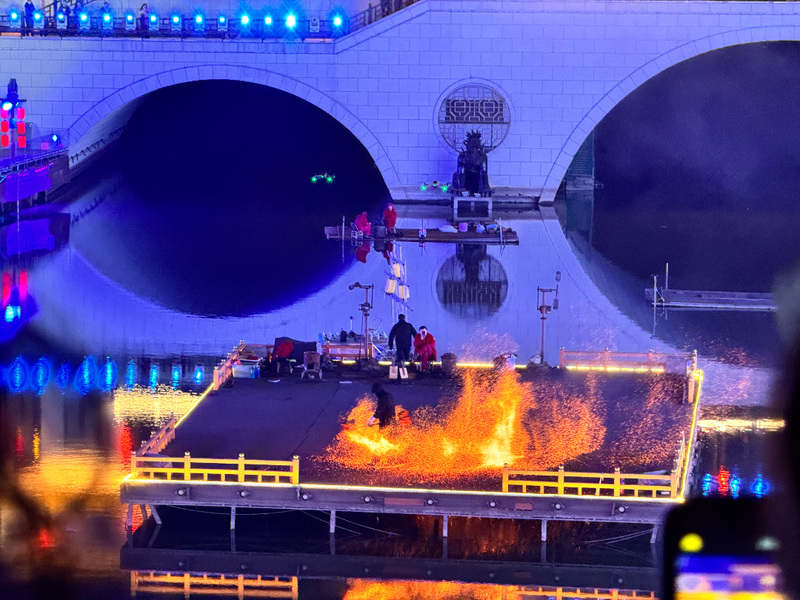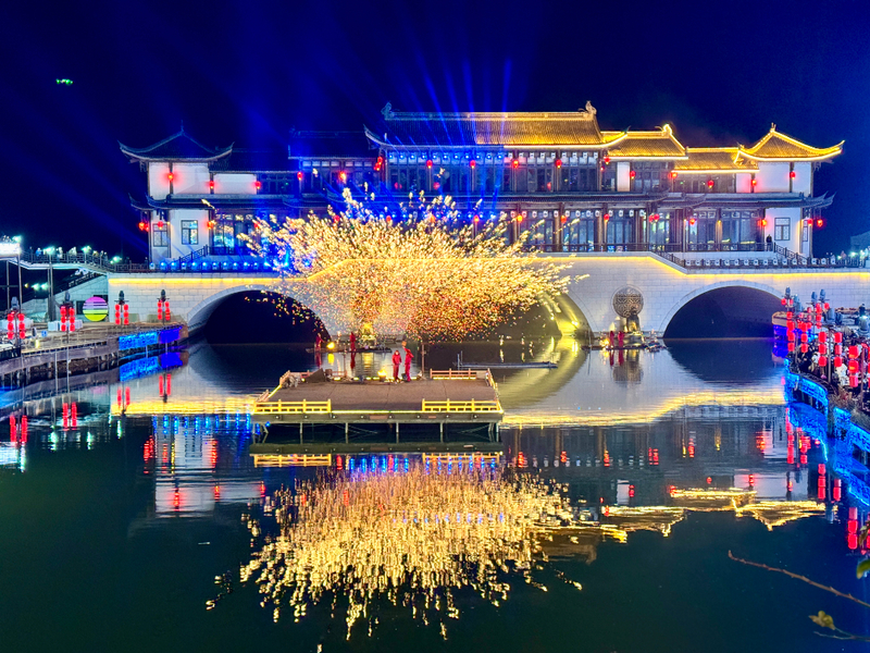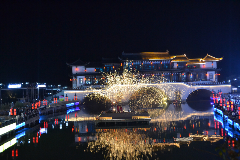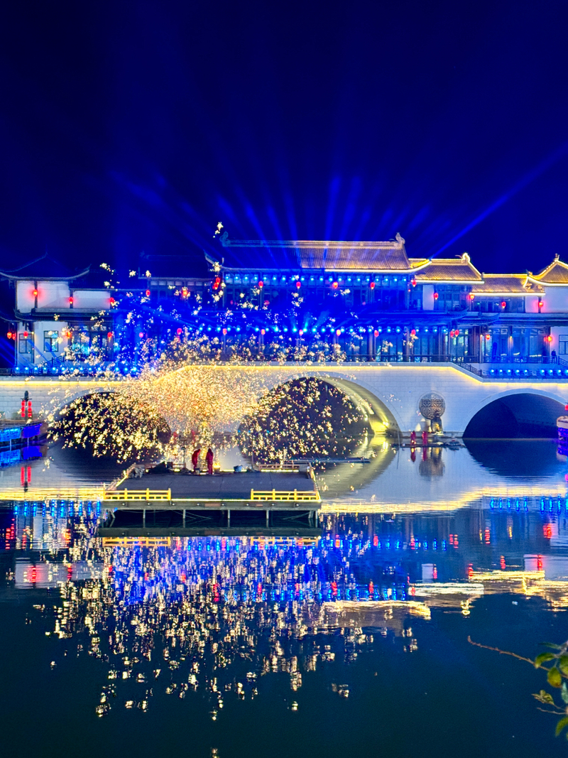 太湖古镇的打铁花表演是一场不容错过的视觉盛宴,每日有两场表演,分别是18点和20点,持续12分钟。表演是在鲤鱼门九鼎桥舞台,最佳观看点是在同心桥。