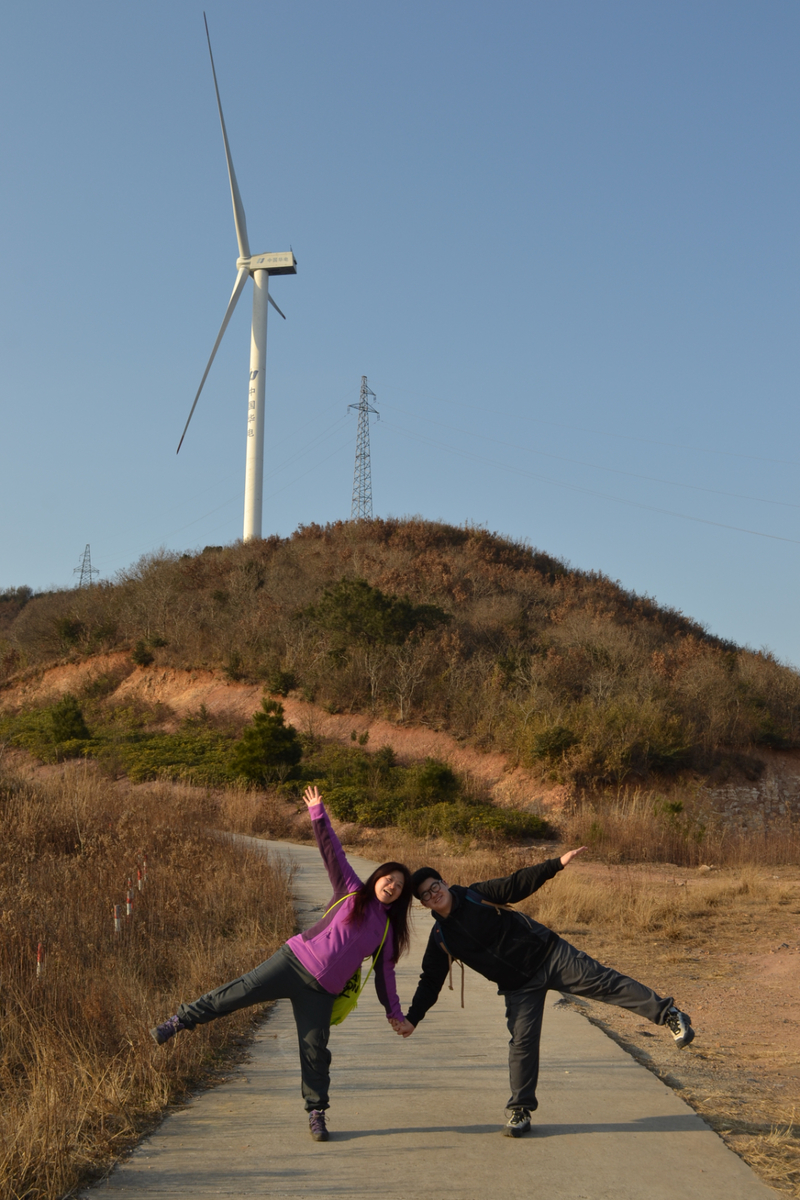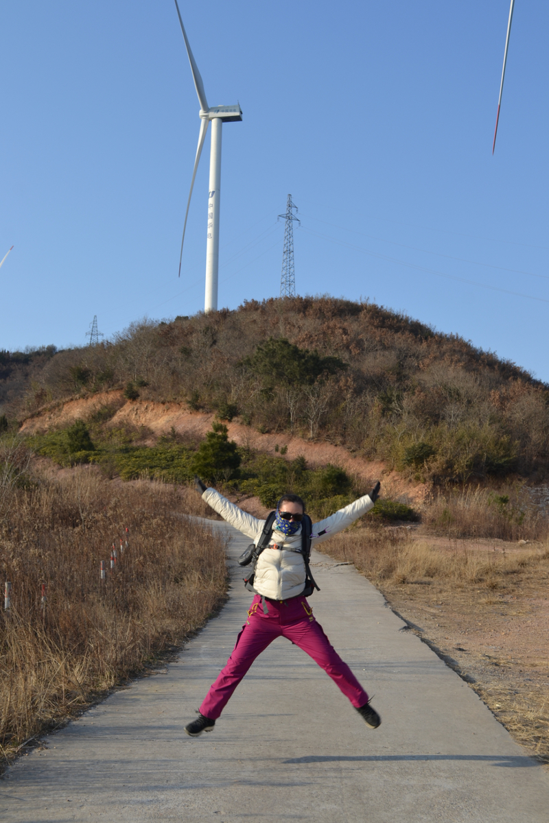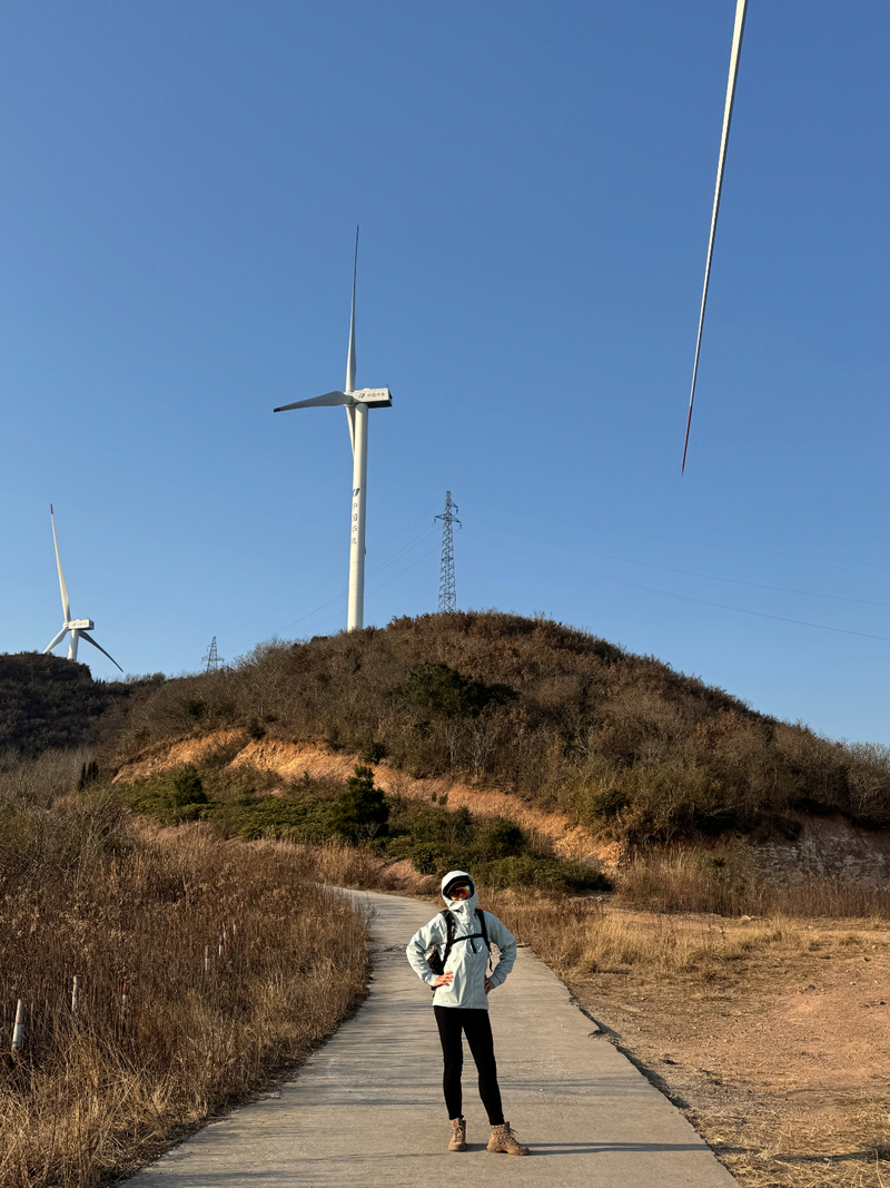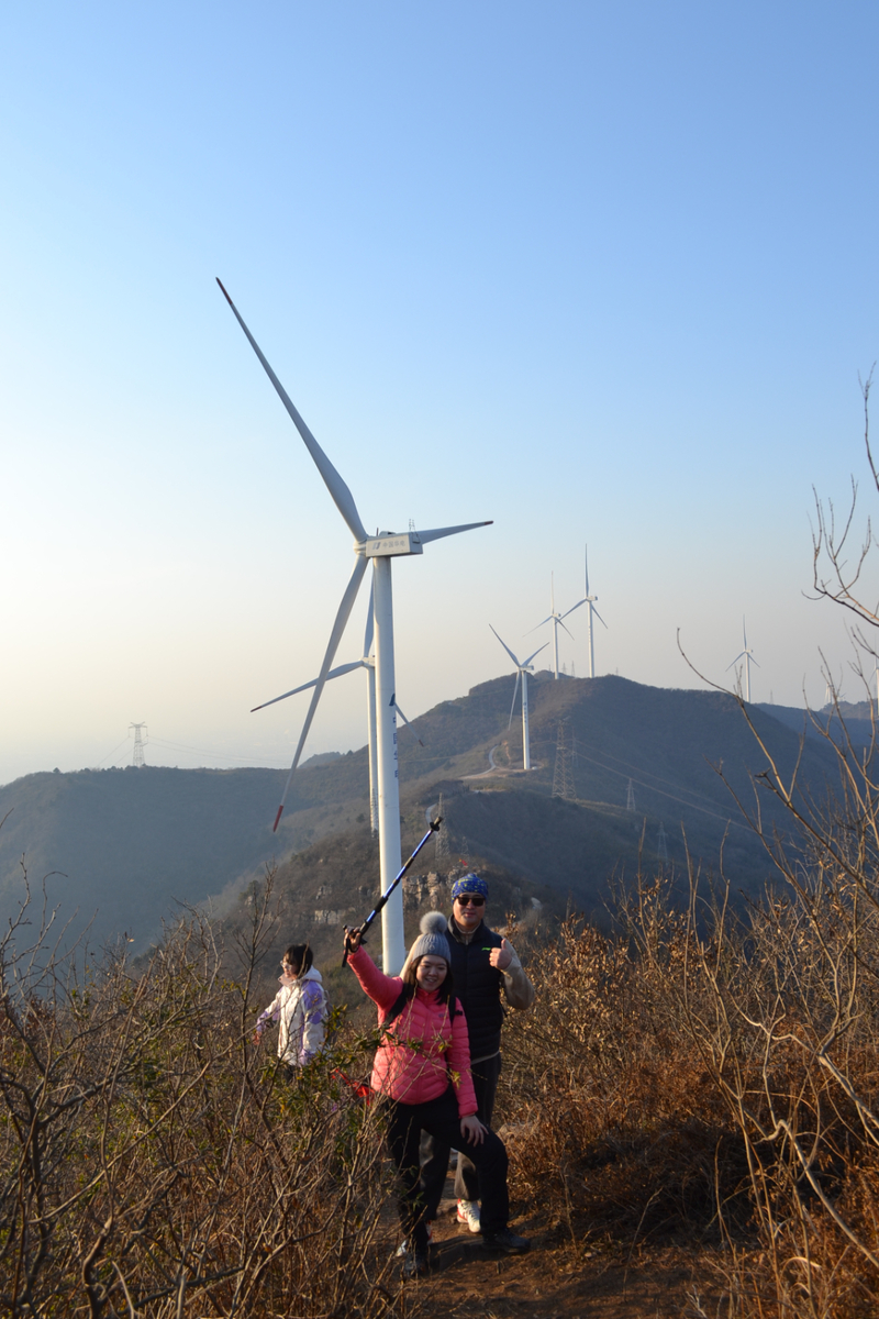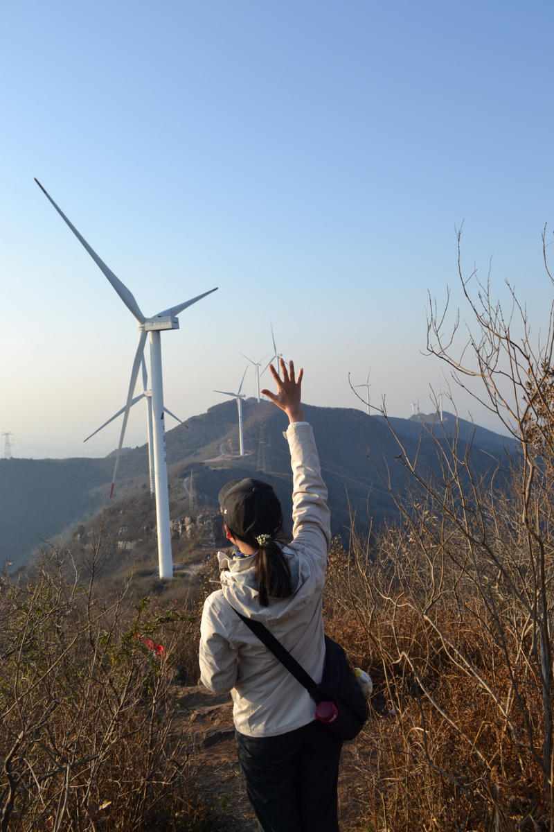 徒步约1.5小时可以达到山顶,在山顶可以看最美风车,穿越山脊,然后下山,下山路有些短距离坡度大的下山,沿途有绳子可以拉着,同步走山脊线,瞭望太湖全景,看山顶风车旋转。