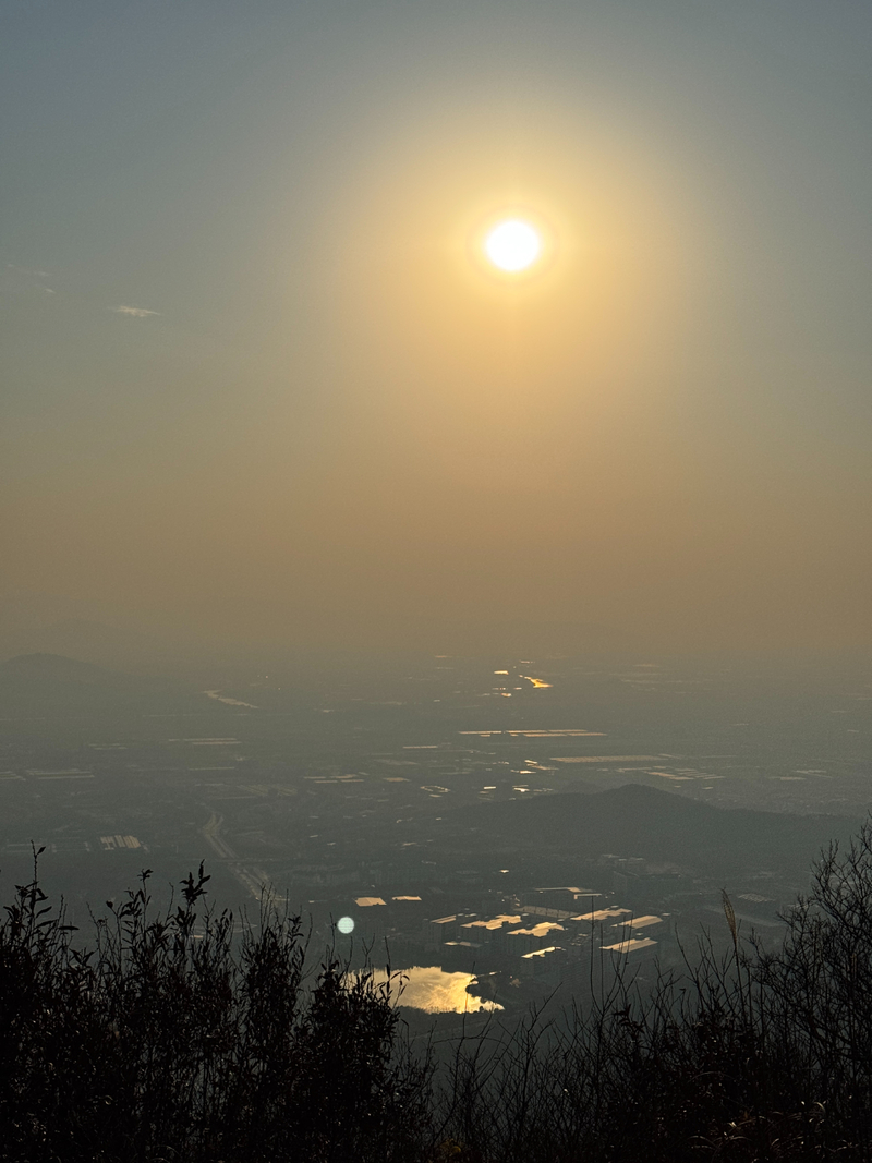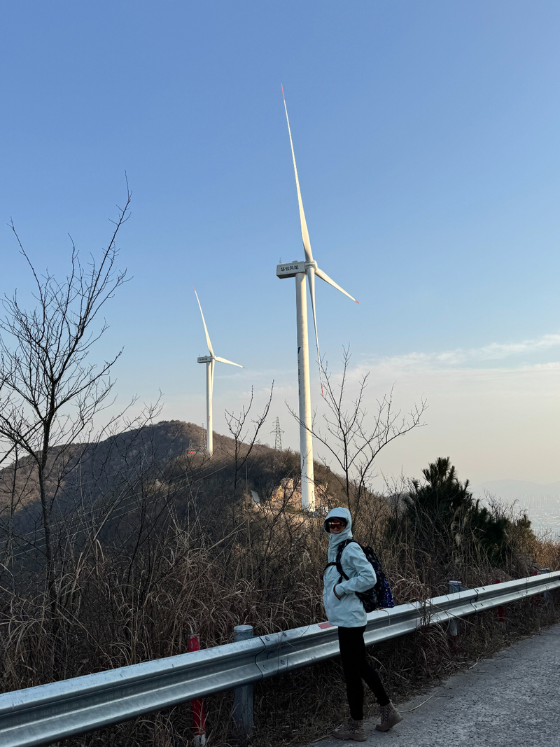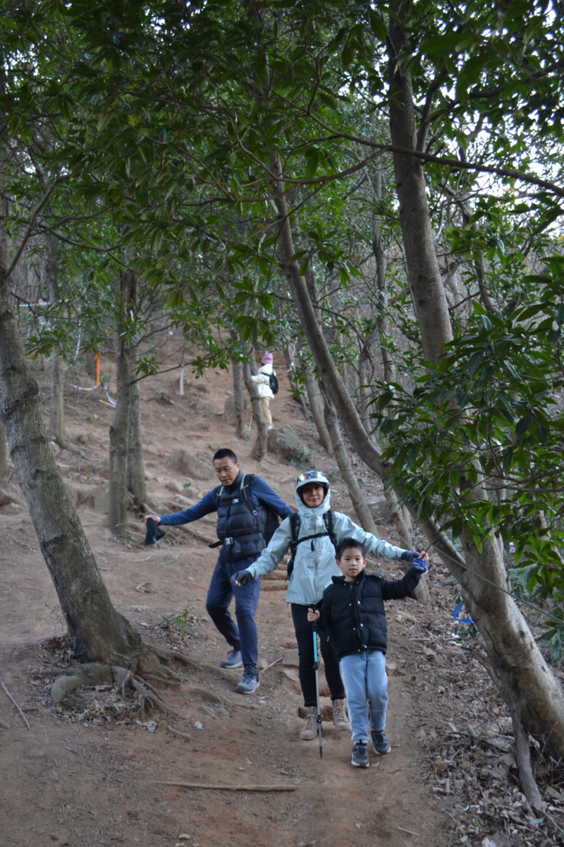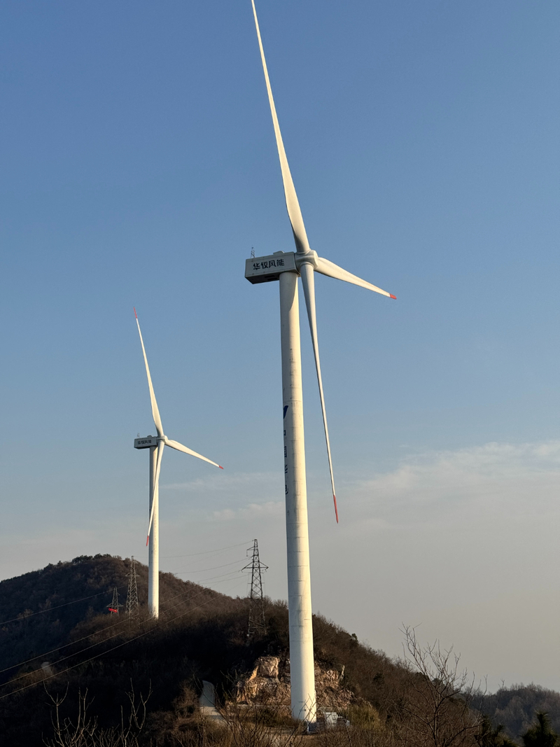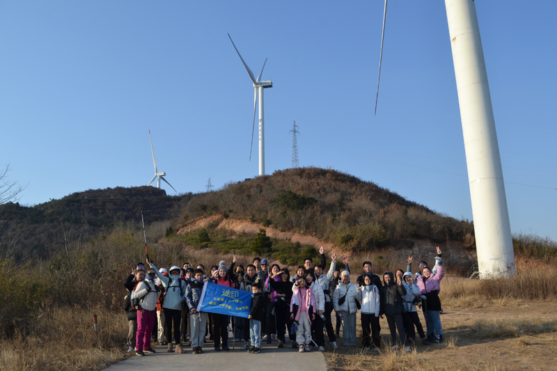 徒步约1.5小时可以达到山顶,在山顶可以看最美风车,穿越山脊,然后下山,下山路有些短距离坡度大的下山,沿途有绳子可以拉着,同步走山脊线,瞭望太湖全景,看山顶风车旋转。