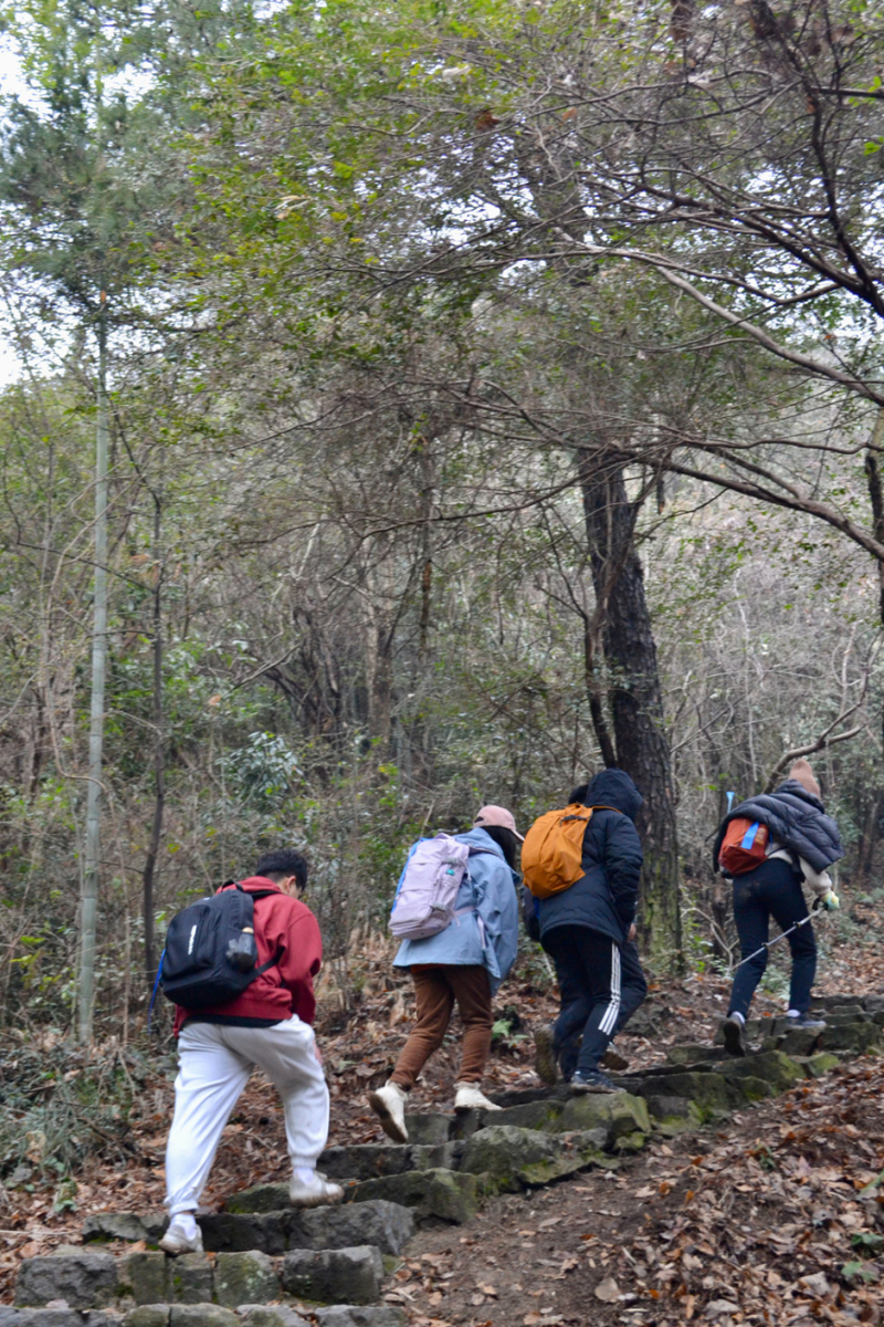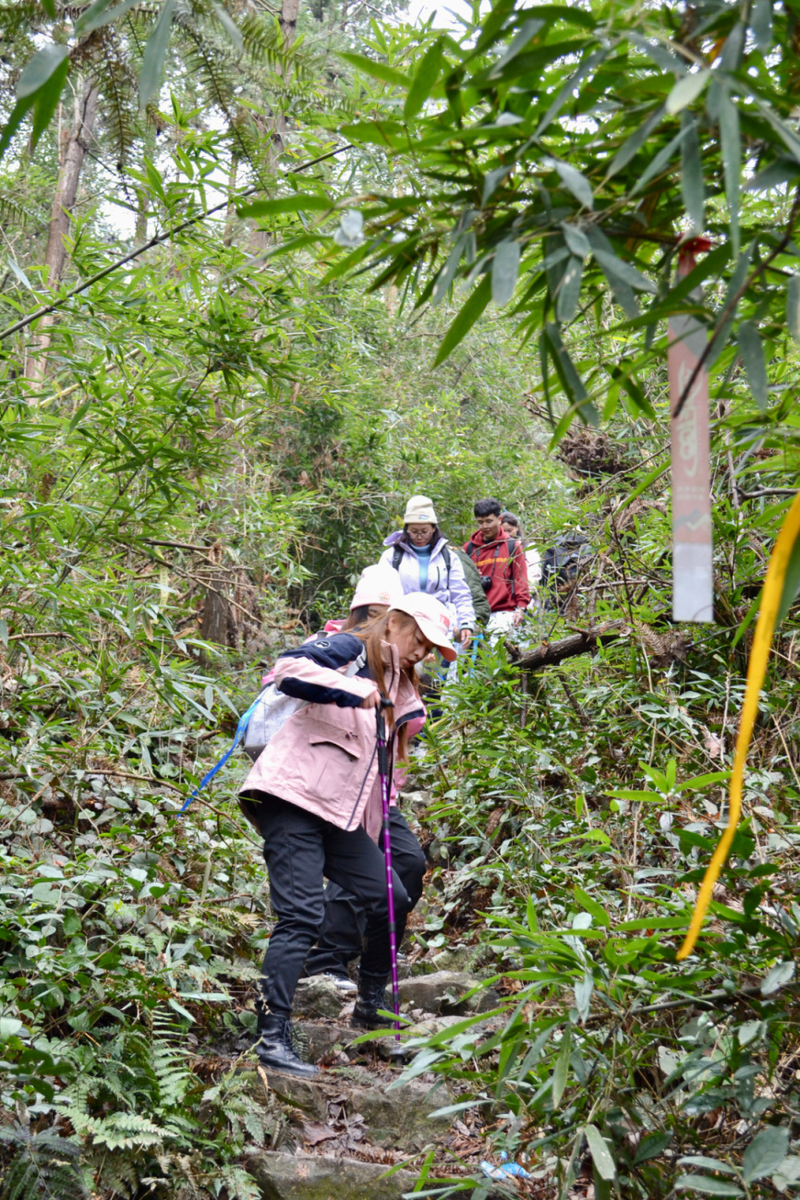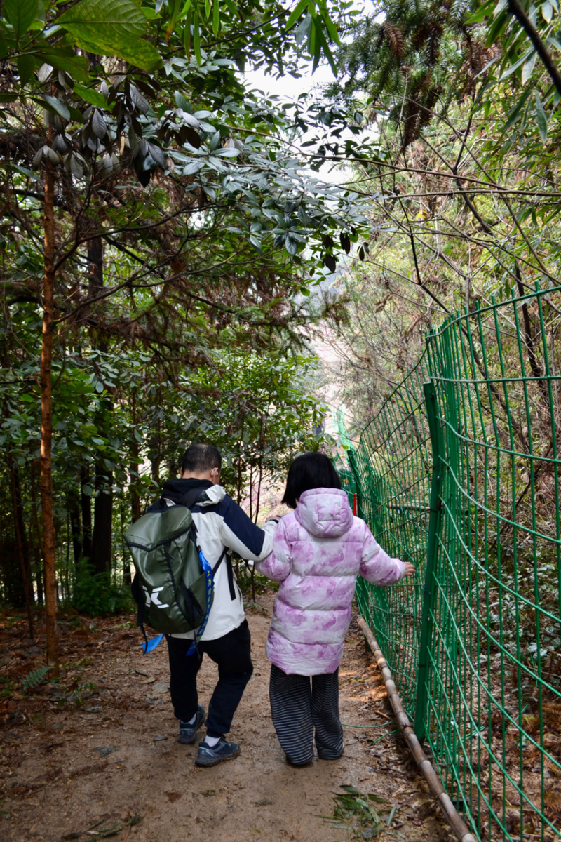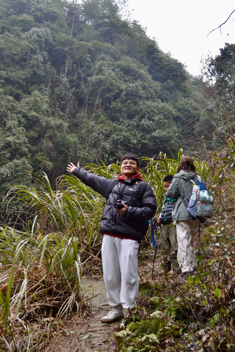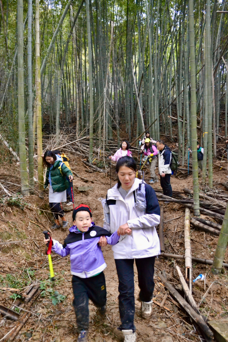 刚踏上古道,就发现由于周六的降雨,刚开始的爬升石板台阶路有些湿滑。随着走道路变得有些泥泞,出现了不少泥巴路。每走一步,鞋底都会沾上厚厚的泥巴,脚步也变得沉重起来。但这丝毫没有影响我们的兴致,反而让这次徒步更具挑战性和趣味性。