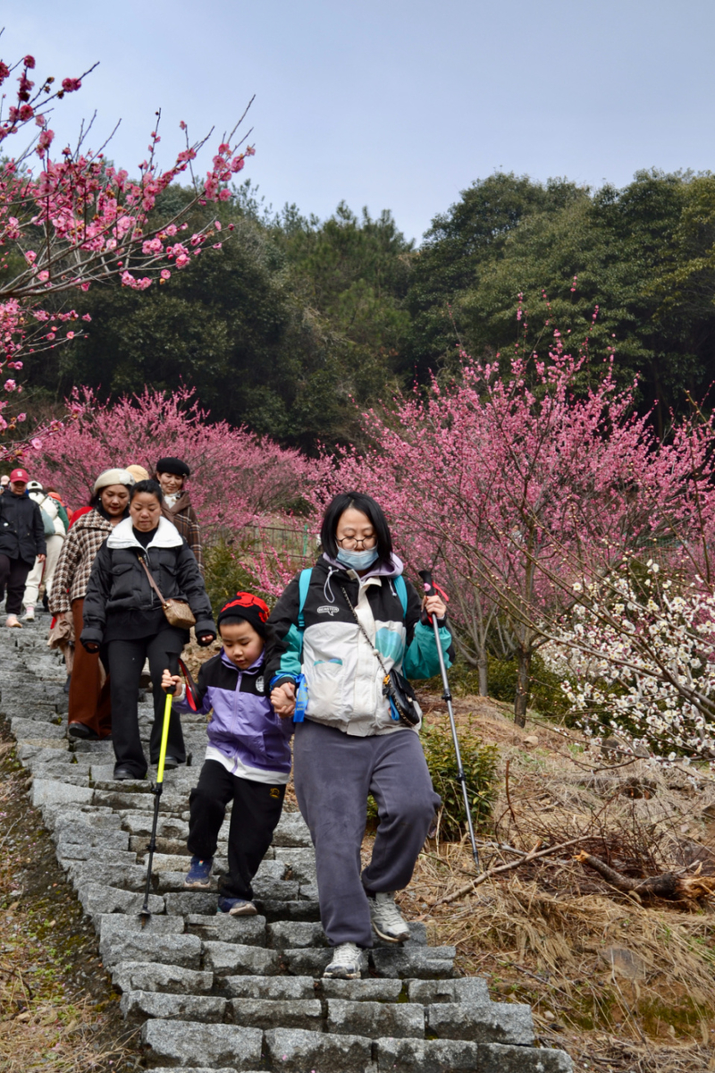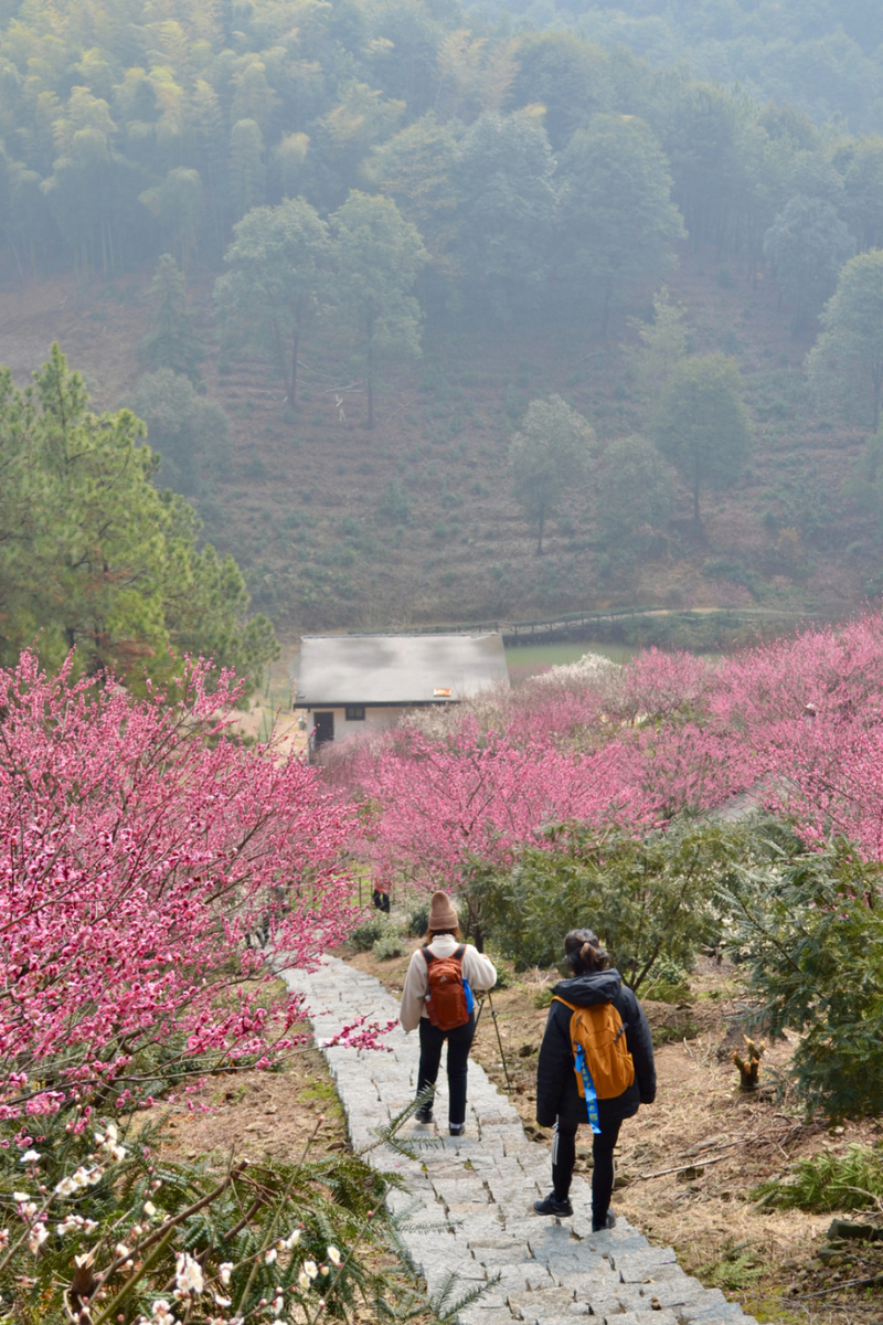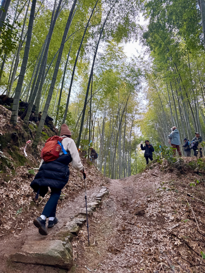 周日,我们满怀期待地奔赴浙江萧山,主要是到吉山梅园赏梅花,徒步萧绍古道。整体徒步公里数:10公里土路、石板路,爬山530米。萧绍古道也叫山阴古道或湖进古道。这里自古以来就是来往绍兴的必经之路。萧绍古道在文献记载里有很多,但进化镇华家垫村现存的这一段是迄今为止保存最完好的遗迹,有2600多米长,用石料砌筑,掩映在竹林里,非常美。