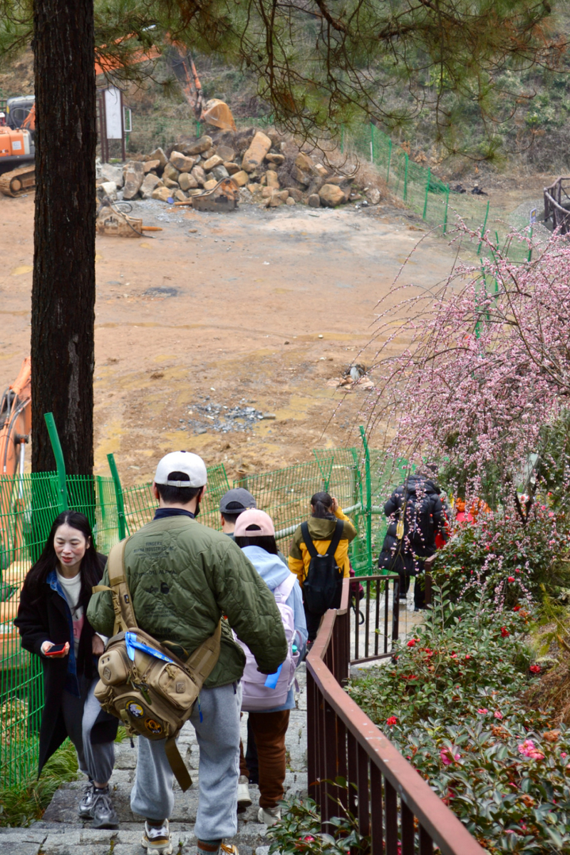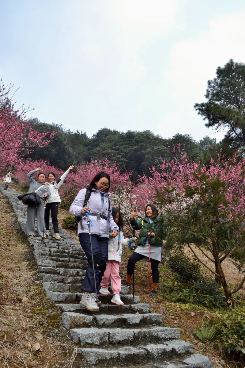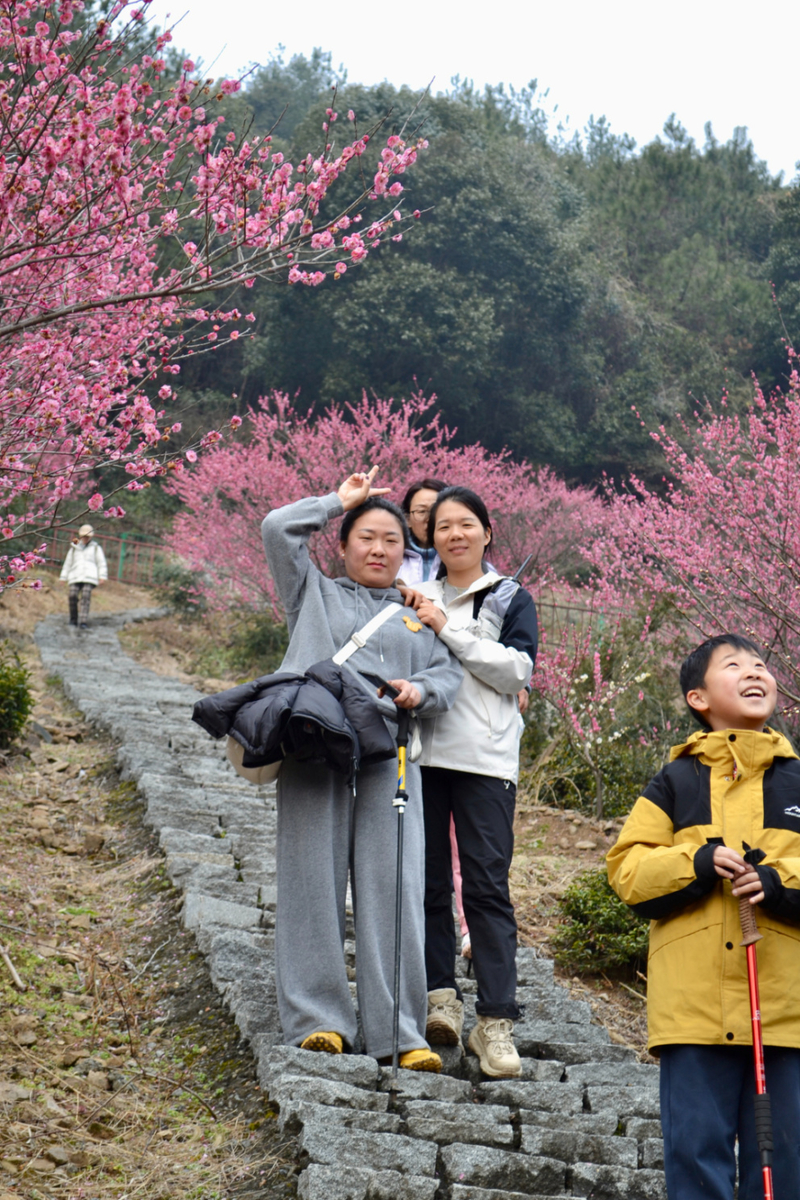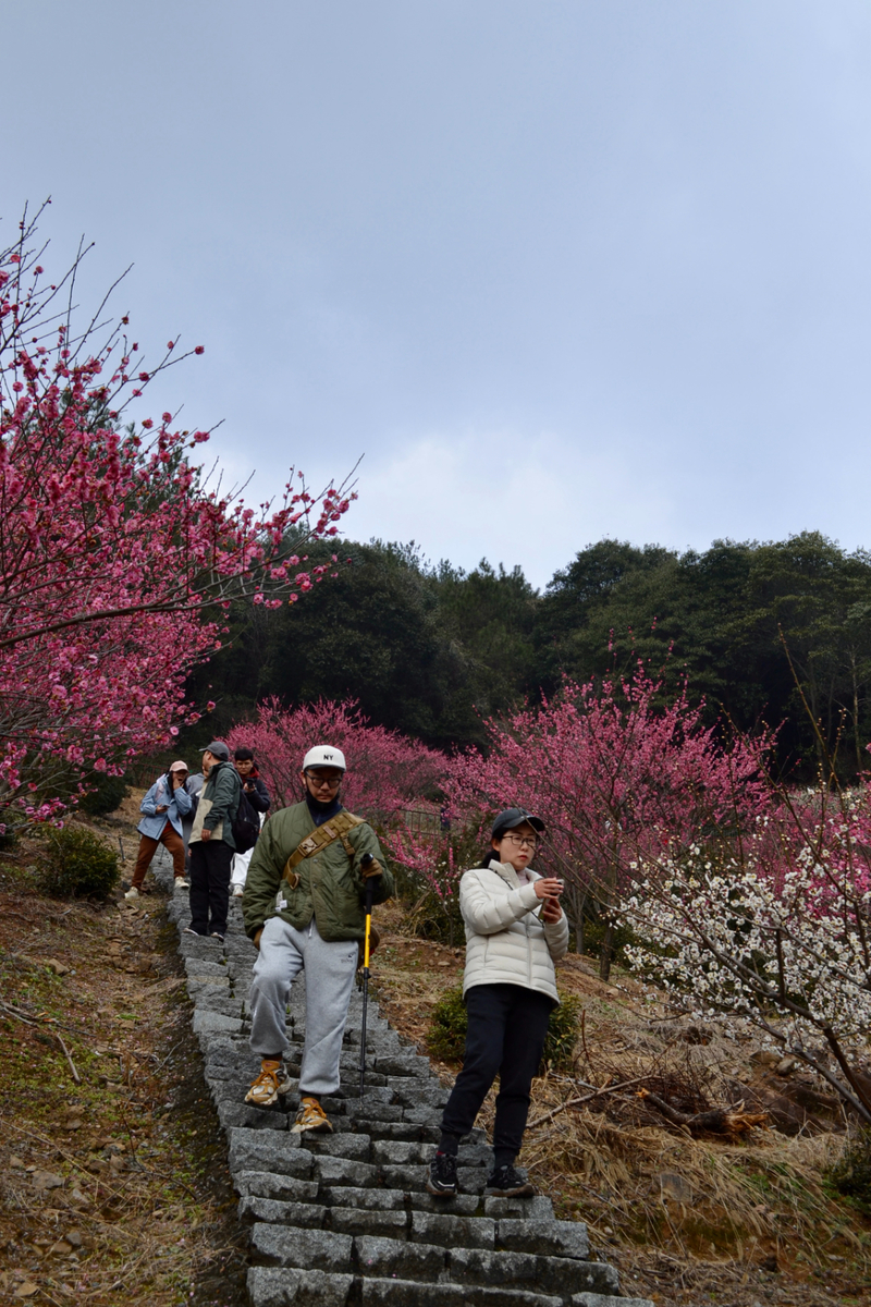 我们首先来到了吉山村村委会,经过大概15分钟的徒步,来到吉山梅园,这周梅花已经到了盛花期,走在里面仿佛置身于一片粉色的云霞之中。梅花在枝头肆意绽放,或娇艳欲滴,或含苞待放,它们在雨后的空气中散发着淡淡的清香,让人心旷神怡。我们漫步在梅园的小径上,不时驻足拍照,想要将这美好的瞬间永远定格。