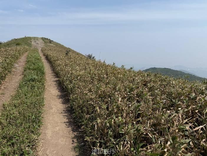 今年的东盘山还是第一次来,我们早早到了民亭村大岙山景区口,一上来就是一个大陡坡,不过还好有树林遮住,压住速度所以爬起来并不累,我们于12点多点就到了第一个顶:炮台岗。我们在这里解决完午饭。然后往大岙顶出发,一路杜鹃花较少,但类似武功山的高山草甸也让人赏心悦目。