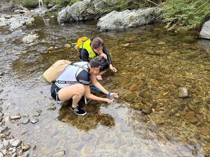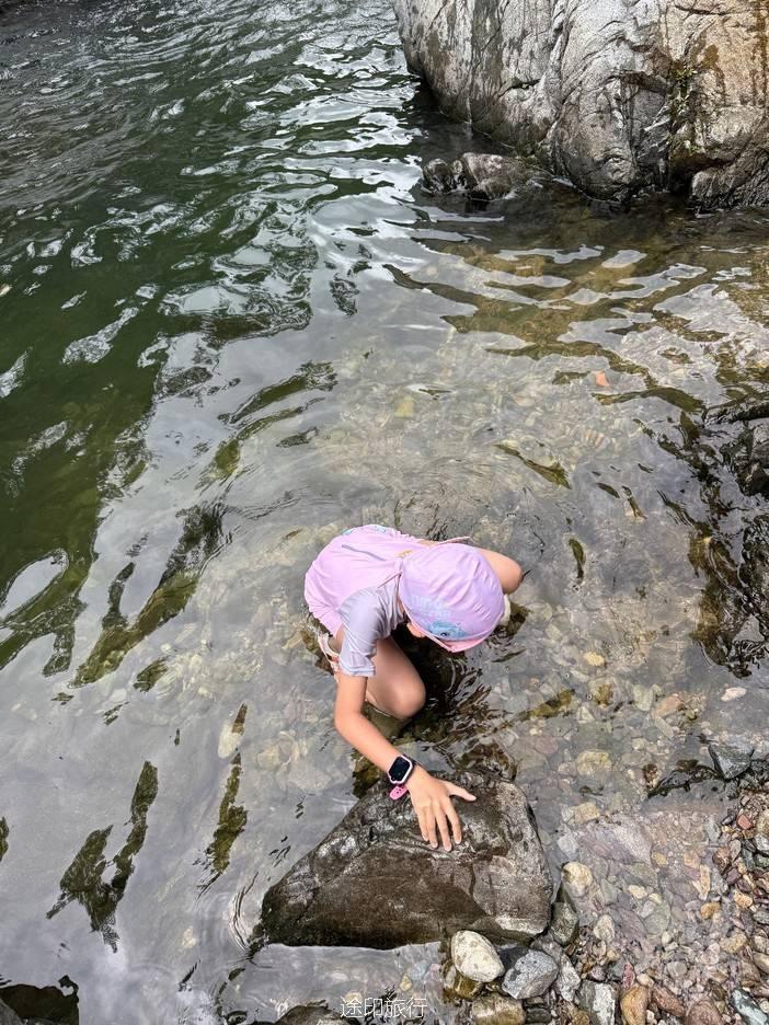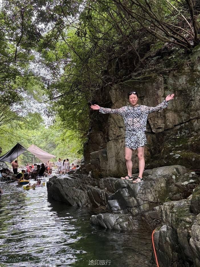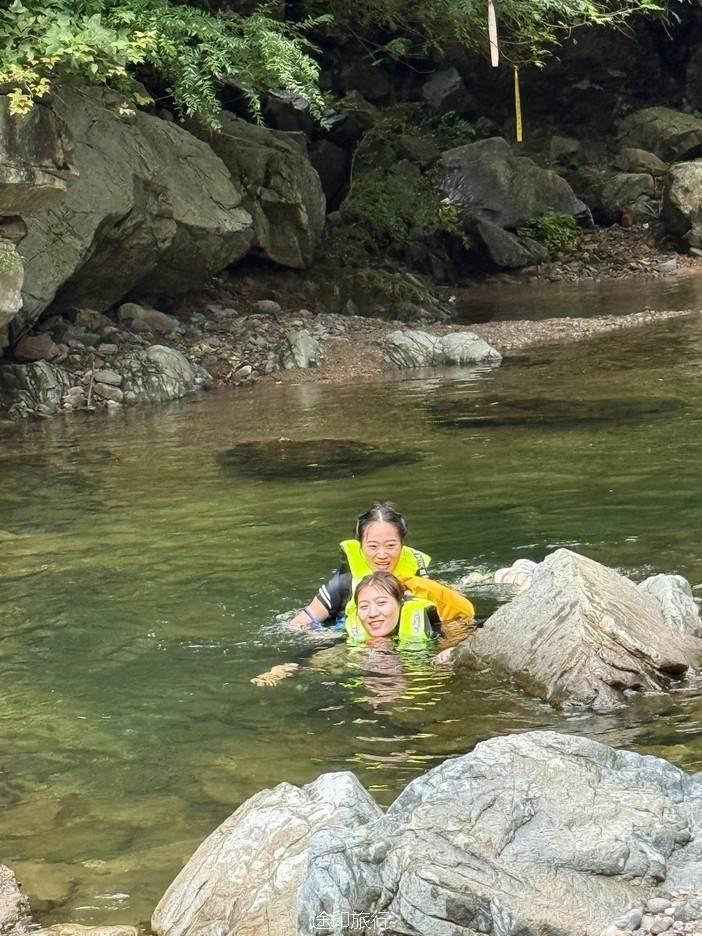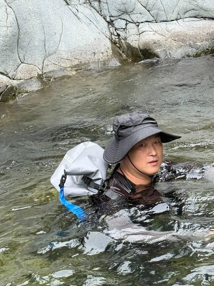 这次我们到了嵊州果冻溪,这次一条初级溯溪路线,全长3.5公里。只有一个深潭。是条刚入门的溯溪线路。 我们沿着溪流往上。可在水里走,也可以在岸边走,天气不是很热,水温也正好。