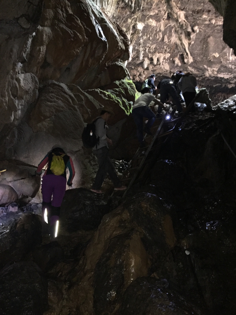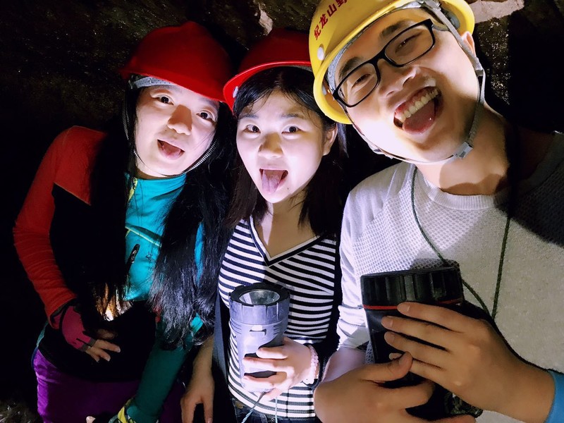 听说这是一个很有故事的洞-卧龙洞,至今为止没人走通过。我表示很感兴趣,说不定里面藏着无数的财宝哦~~~我们走了近一个小时,鞋子毫无疑问的全湿了,索性就走在水里,冰冰凉的,很神奇。有几个小拐弯很难走,但是我们都不会退缩的!噢耶!