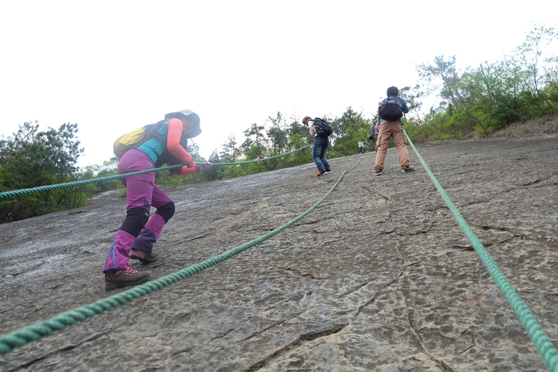 我表示,我看到这个斜坡非常激动,感觉可以疯狂的玩耍了,一边抓着绳子一边给小伙伴们拍照。