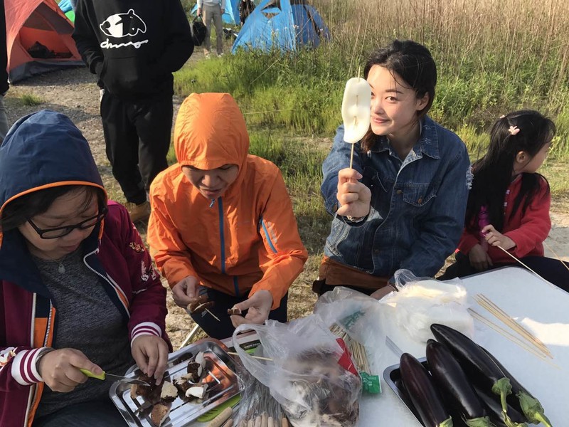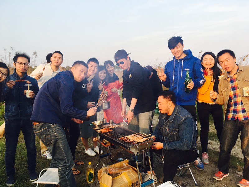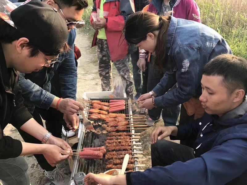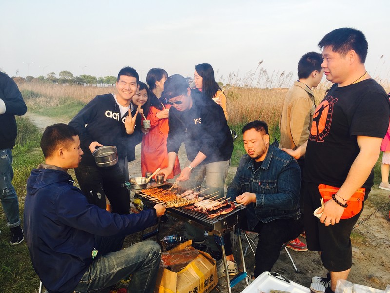但这一切的不完美都是美妙的断点,大家一会跑烧烤组,一会走去火锅组,两边来来回回,好不热闹。
