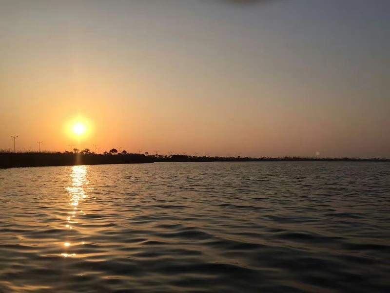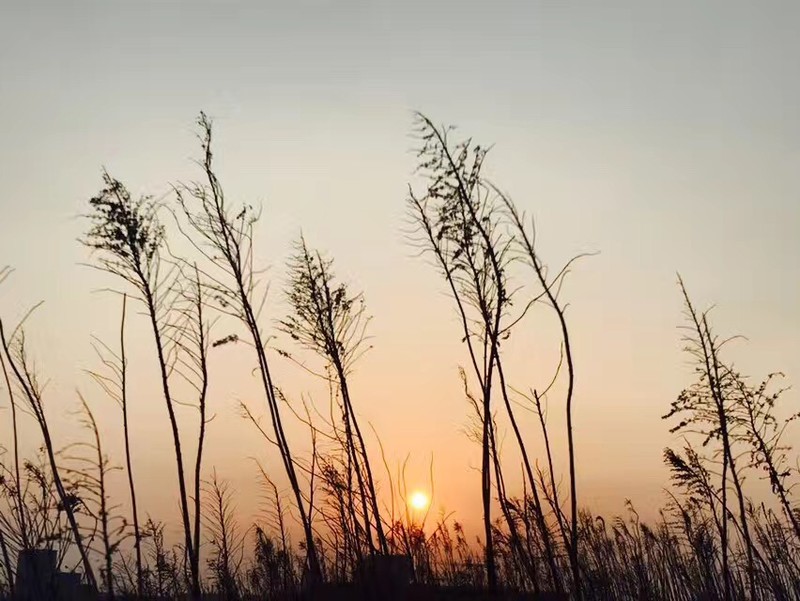 太阳在吵吵闹闹中渐渐西沉,湖边的芦苇随风慢慢摇。