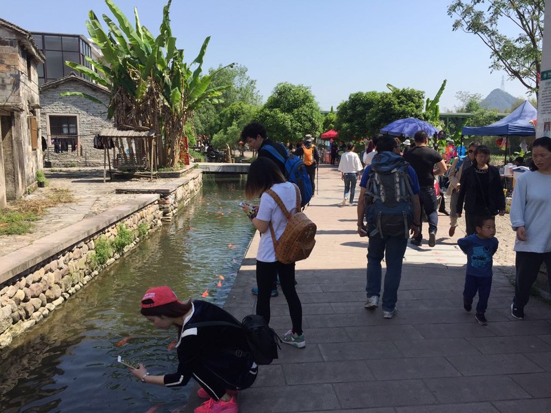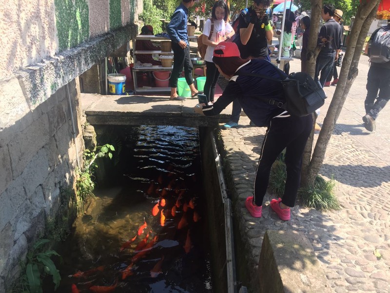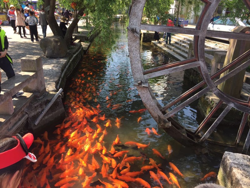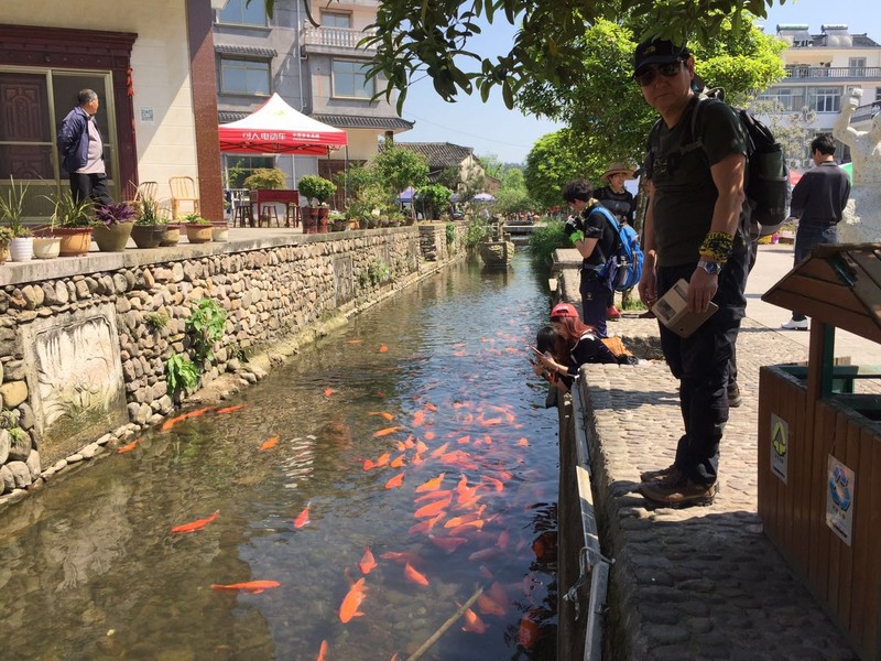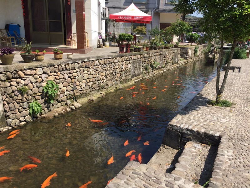 村里有条水渠,水质清澈,养着极多的红鲤鱼,不禁让人想婺源的挺贵的特色菜,荷包红鲤鱼